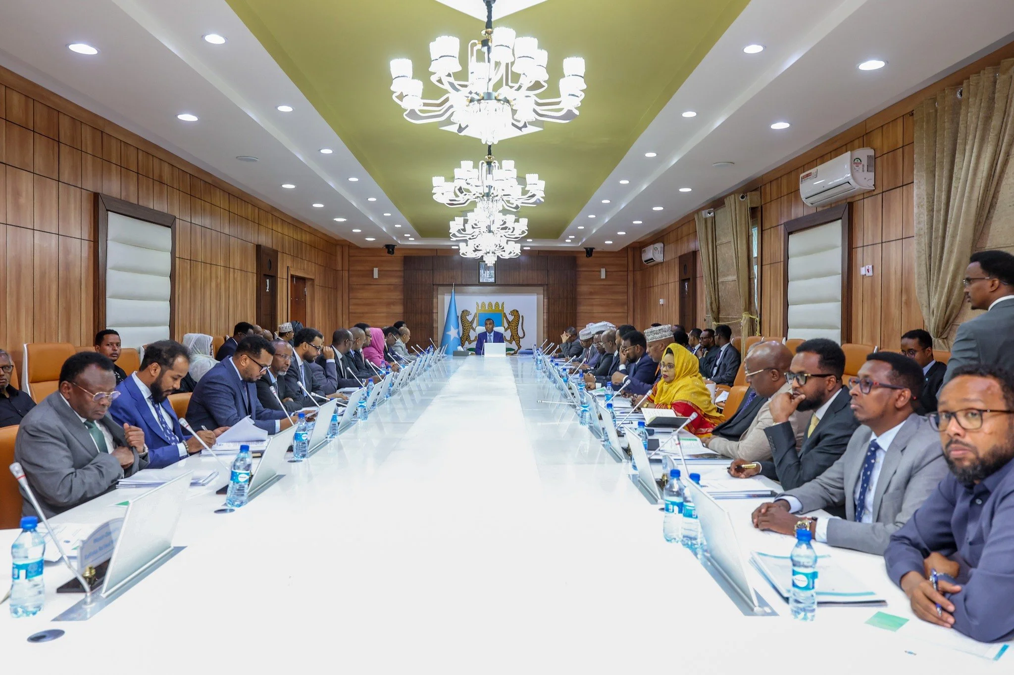 (MUQDISHO)-Wararka laga helaayo caasimadda Soomaaliya ee Muqdisho ayaa sheegaayo in Golaha Wasiirrada Xukuumadda Federaalka Soomaaliya ay maanta yeeshay kulankoodii Todobaadlaha ahaa ayaa lagu soo bandhigay warbixinno ka tarjumaya xaaladda abaaraha ka jira gayiga Soomaaliyeed iyo saameynta dhanka biyaha iyo cuntada ah ee ay ku yeelatay dalka, iyada oo ay Xukuumaddu qorshaynaso tallaabooyin degdeg ah oo wax looga qabanayo xaaladda taagan. Kulanka oo uu guddoomiyey Raysal Wasaaraha Xukuumadda Jamhuuriyadda Federaalka Soomaaliya, Mudane Xamsa Cabdi Barre, ayaa lagu ansixiyey ๐๐๐๐ซ-๐๐ข๐๐๐๐ฆ๐ข๐ฒ๐๐ก๐ ๐๐๐ง๐๐ฎ๐ฎ๐ช๐ ๐๐๐ซ๐๐ง ๐๐ ๐๐๐๐ซ๐๐ฒ๐ง๐ญ๐ ๐๐ก๐๐ญ๐๐ซ๐๐ก๐ ๐ข๐ฒ๐จ ๐๐ฎ๐ฌ๐ข๐ข๐๐จ๐จ๐ฒ๐ข๐ง๐ค๐, kaas oo dhigaya hannaan sharci iyo maamul oo mideynaya diyaar-garowga, ka-hortagga, iyo wax ka qabashada musiibooyinka dabiiciga ah iyo kuwa baniโaadamka sameeyo, iyada oo ujeedka guud yahay isku tashiga bulshada iyo dowladda. Golaha Wasiirrada Xukuumadda Federaalka Soomaaliya, ayaa meel-mariyey heshiisyo iyo siyaasado muhiim u ah horumarka heyโaddaha ay khuseyso kuwaas oo lagu tayeynayo adeegyada dowladda waxa ayna kala yihiin.