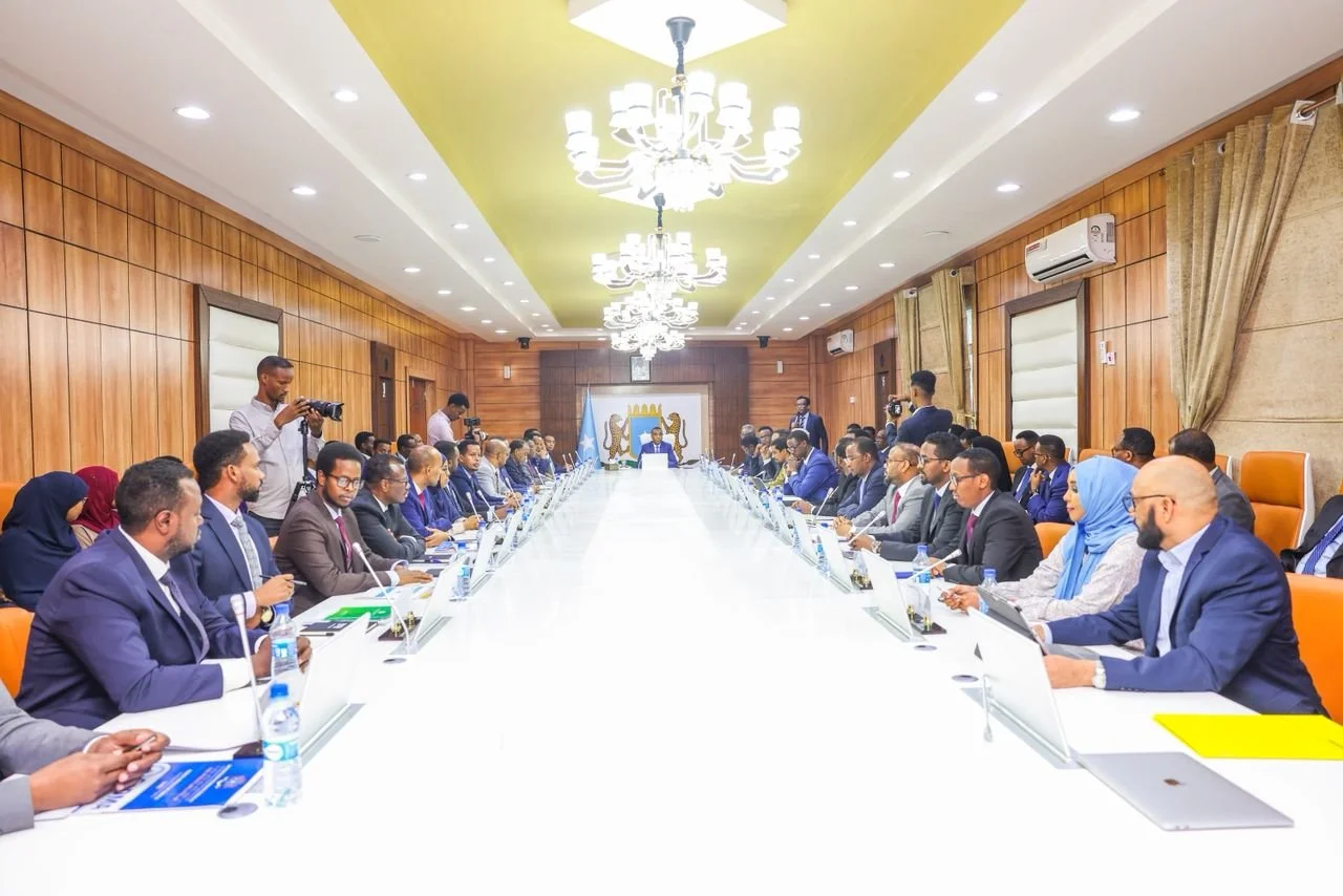 (MUQDISHO)-Wararka aan ka heleyno caasimadda Jamhuuriyadda Federaalka Soomaaliyaee Muqdisho ayaa sheegaayo in Raysal Wasaaraha Xukuumadda Jamhuuriyadda Federaalka Soomaaliya, Mudane Xamsa Cabdi Barre, oo ku guda jira Barnaamijka la-Xisaabtanka Xukuumaddiisa, ayaa maanta su’aallo ka weydiiyey Wasaaradaha kala ah, Arrimaha Gudaha Federaalka iyo Dib-u-heshiisiinta, Arrimaha Dibadda iyo Iskaashiga Caalamiga ah, Amniga Gudaha, Gaashaandhigga, Cadaaladda iyo Arrimaha Dastuurka, Deegaanka iyo Isbeddelka Cimillada, isaga oo dul istaagay waxyaabaha uga hirgalay qorshaha wax-qabadka sannadlaha ah ee Xukuumadda. Isla-xisaabtankan ayaa diirradda saaraya mideynta dadaalka dowladda, taasi oo xoojinaysa kalsoonida shacabka ey ku qabaan Hay’adaha dawladda, maadama Qorshaha Xukuumadda uu yahay mid ka jawaabaya baahiyaha shacabka, isla markaana horseed u noqonaya dowlad-wanaag. Wasaaradahan ayaa sanadkan hirgeliyey waxqabadyo muuqda, oo ey ka mid yihiin xoojinta nidaamka Federaalka, dib-u-heshiisiinta bulshada, iskaashiga caalamiga ah iyo difaaca danaha Qaranka, adkeynta amniga gudaha iyo tayeynta Ciidamada Qalabka sida, dib-u-xoreynta, iyo horumarinta adeegyada cadaaladda iyo dib-u-eegista dastuurka dalka. Raysal Wasaare Xamse Cabdi Barre, ayaa tilmaamay in Xukuumadda DanQaran ey joogtaynayso isla-xisaabtanka iyo daah-furnaanta ayna noqon doonto sifo saldhig u noqota hirgalinta qorshayaasha dowladda.
