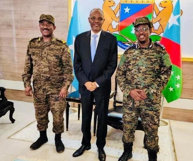 (SOMALIA)-Dalka Somalia hadda waa Federaal oo waxa uu leeyahay Dawlad Federaal ah iyo maamulo hoos yimaado DFS dawladahaas hoos yimaado DFS ayaa kala ah {Puntland,Galmudug,Hirshabeele,Koonfur Galbeed Soomaaliya iyo Jubaland} dhammaan shantaan maamul goboleed ayaa mid walba waxa uu leeyahay una madaxbanaan yahay Dastuurkiisa waxa eeyna u dhisan yihiin sidIi iyagoo ah Dawlad oo kale oo waxeey leeyihiin Madaxweyne,Madaxweyne ku Xigeen Gole Wasiiro,Gudoomiye Baarlamaan iyo ku Xigeenadiisa,Dastuurka ku meel gaarka ah ee JFS ayaa qeexaayo awoodaha DFS iyo tan maamuladda hoos yimaado. Qodobka 54-aad ee Dastuurka ku meel gaarka ah ee JFS waxa uu leeyahay”Awood qeybsiga siyaasadeed iyo dhaqaale waxaa ka wada xaajoon doono DFS iyo Dawladaha ka mid noqonaayo DFS marka laga reebo:(a)-Arrimaha Dibadda. (b)-Difaaca Qaranka. (c)-Jinsiyadda iyo Socdaalka. (d)-Siyaasadda lacagta,oo eey awoodeeda iyo maamulkeeda yeelanayso xukuumadda Federaalka”. Hadaba waxa aan la wada soconaa in todabaadkii la soo dhaafay ineey dagaalo ka dheceen xuduudka Soomaaliya eey la wadaagto Dalka Itoobiya gaar ahaan Gobolada Bakool iyo Hiiraan kana kala tirsan maamuladda Koonfur Galbeed Soomaaliya(KGS) iyo H/Shabeele,dagaaladdaas ayaa waxa eey u dhexeeyeen Alshabaab iyo ciidamadda Dawlad Degaanka Soomaaliyeed(DDS)-ta ee Liyu Booliska waxaane kala gaaray khaarse aad u fara badan labada dhinac ee dagaalantay,Madaxweynaha DDS-ta Mustafa Cagjar ayaa sheegay ineey gudaha dhulka Soomaaliya ka sameeysan doonaan goobo ka caagan dagaaladda(Security Buffer Zone) arrintaan ayaane dhalisay muran aad xoogan oo ku saabsan xuriyadda Soomaaliya,hadaba maanta oo Arbaca ah waxaa soo baxay warar sheegaayo in magaaladda Baydhabo ee hadda ah caasimadda ku meel gaarka ah ee KGS ineey yimaadeen saraakiil ka kala socotay dalka Itoobiya iyo DDS-ta eeyna kala hogaminaayeen Taliyaha Hawlgalka Ciidamadda dalka Itoobiya Tesfaya Ayelo iyo Taliyaha Liyu Booliska ee DDS-ta Xaaji,waxa eeyna Baydhabo kula kulmeen Madaxweynaha KGS Mudane C/casiis Lafta Gareen mana la soo sheegin waxa eey ka wada hadleen waayo kulan ayaa u muuqdo inuu ahaay qarsoodi,laakinse su’aasha u baahan in loo helo Jawaab ayaa ah”Madaxweyne Maamul Goboleed awood ma u leeyahay inuu arrin ku saabsan Amniga kala hadlo dal kale isagoo uusan goobjoog ka ahayn Wasiirka Gaashaandhiga Soomaaliyeed?”Waa arrin u taalo DFS haddii arrintaani dhacday.