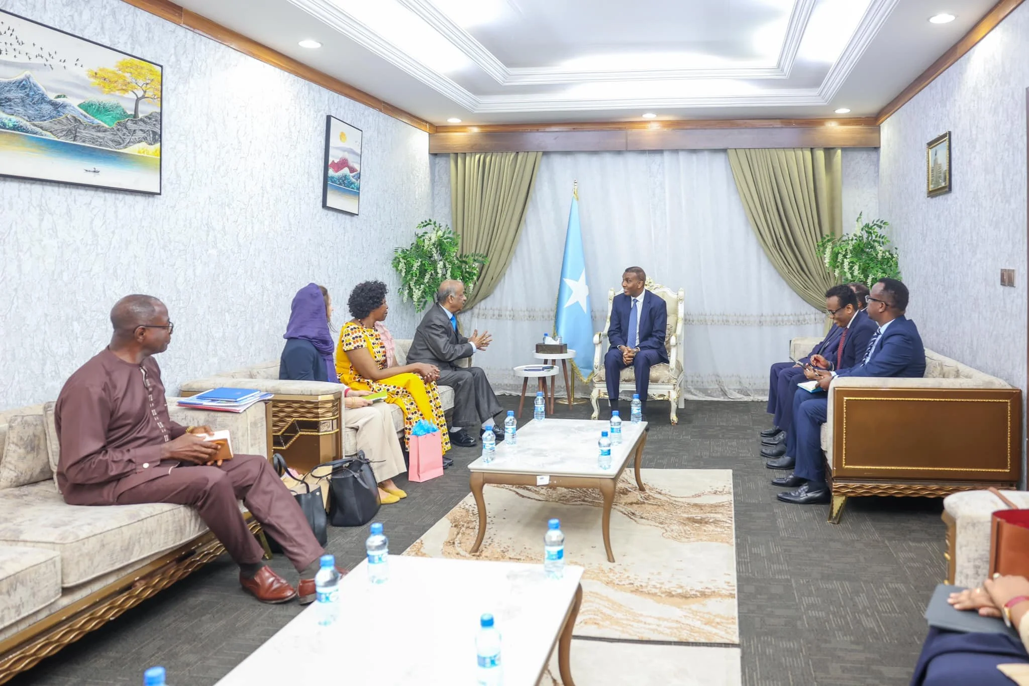 (MUQDISHO)-Reysal Wasaaraha Xukuumadda Jamhuuriyadda Federaalka Soomaaliya Mudane Xamse Cabdi Barre ayaa Xafiiskiisa ku qaabilay Ku Xigeenka Xoghayaha Guud ee Qaramada Midoobe u qaabilsan Taageeradda Hawlgaladda Md.Atul Khare,labada masuul ayaa ka wada hadlay sii xoojinta Iskaashiga ka dhexeeyo Soomaaliya iyo Qaramada Midoobe. Reysal Wasaare Xamse iyo Atul Khare ayaa kulankooda uga wada hadlay xoojinta taageeradda xagga Amniga iyo Farsamo ee Qaramada Midoobe ey u fidiso Dawladda Federaalka Soomaaliya iyo sidii loo sii xoojin lahaay,gaar ahaan qorshaha ciidanka Amniga Soomaaliya ey kula wareegayaan goobaha ey baneeyaan ciidamadda ka socdo Midawga Afrika ee Atmis iyo u diyaar garawga hawlgalka cusub ee AUSSOM. Ku Xigeenka Xoghayaha Guud ee Qaramada Midoobe ee Waaxda Taageerada Hawlgaladda ayaa dhankiisa ka mahadceliyey soo dhaweynta Reysal Wasaaraha Soomaaliya Md.Xamse,isaga oo ugu hambalyeeyey Soomaaliya kursiga Golaha Amaanka ee Qaramada Midoobe,waxa uuna u rajeeyey in Soomaaliya ey gacan ka geysan karto nabadda iyo Horumarka Gobolka iyo Guud ahaan caalamka.