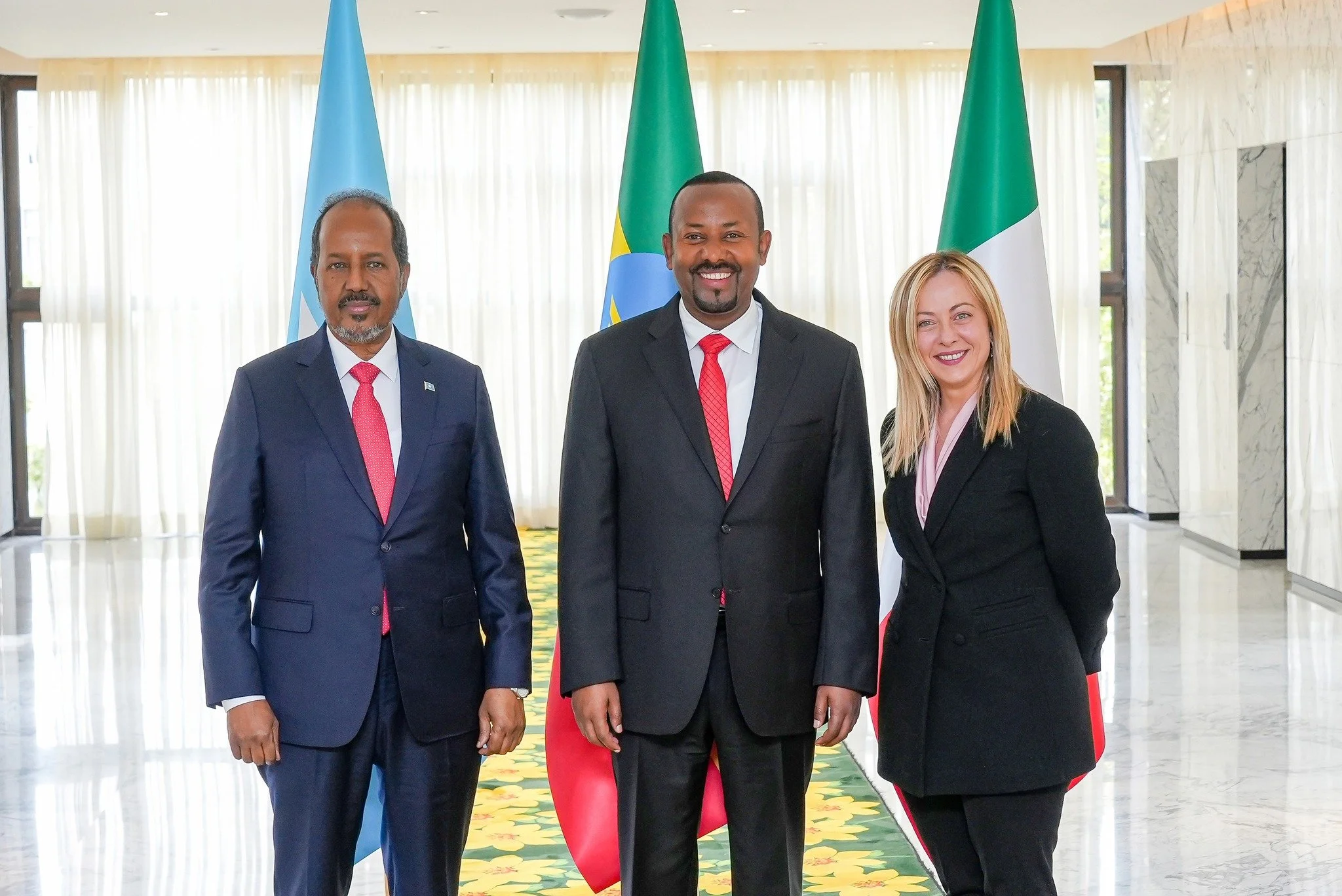 (ADDIS ABABA)-Wararka laga helaayo caasimadda dalka Itoobiya ee Addis Ababa ayaa sheegaayo in halkaasi uu ka socdo shir seddex geesood ah una dhexeeyo dalalka Soomaaliya,Itoobiya iyo Talyaaniga,wadamadaan seddexda ah ayaa waxaa kala metelaayo Reysal Wasaaraha Itoobiya ee martida loo yahay Abiy Axmed, Madaxweynaha Jamhuuriyadda Federaalka Soomaaliya Mudane Xasan Sheekh Maxamuud iyo Reysal Wasaaradda dalka Talyaaniga Georgia Meloni. Masuuliyiintaan ayaa lagu wadaa ineey ka wada hadlaan arrimo ku saabsan amniga gobolka Geeska Afrika gaar ahaan dagaalka dawladda Fedraalka Soomaaliya kula jirto Alshabaab iyo qulqulatooyinka ka soo cusboonaaday qeybo ka mida dalka Itoobiya, Madaxweynaha JFS Xasan Sheekh Maxamuud ayaa kala hadlay madaxda kale guulaha ey gaareen ciidamadda xooga dalka Soomaaliyeed waxa uuna Madaxweynuhu u sheegay madaxdaasi in hadda uu bilawday wejigii labaad ee dagaalka Alshabaab looga xureynaayo dalka Soomaaliya. Reysal Wasaaradda Talyaaniga Meloni ayaa ayadana dhinaceed waxa ey dawladda Soomaaliya ku boorisay ineey halkooda ka sii wadaan dagaalka Alshabaab si Soomaaliya u gaarto nabad waarta,shirka ayaa lagu wadaa in la soo gabagabeyo maanta.