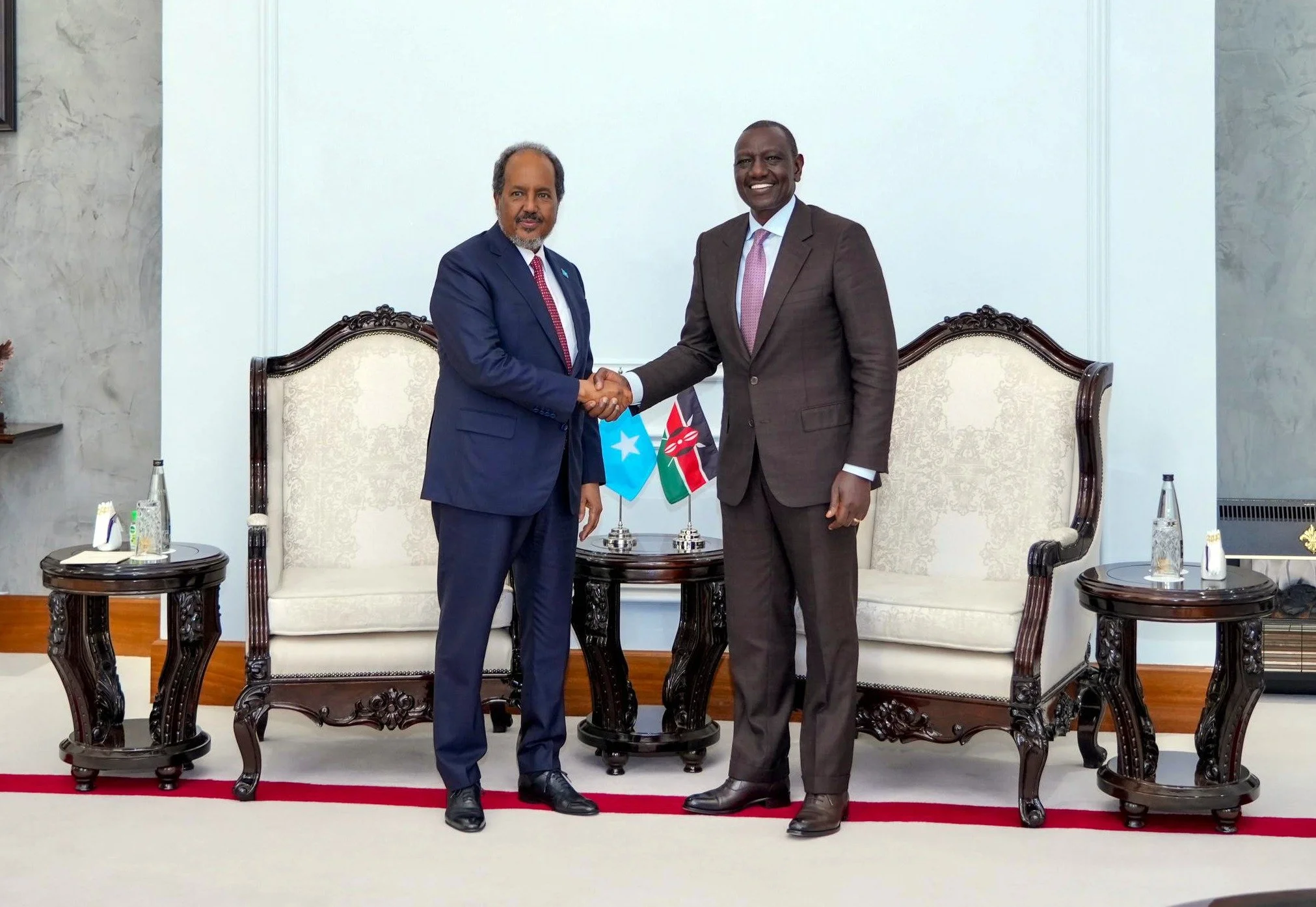(MUQDISHO)-Wararka inaga soo gaaraayo caasimadda Soomaaliya ee Muqdisho ayaa sheegaayo in Madaxweynaha Jamhuuriyadda Federaalka Soomaaliya Md.Dr.Xasan Sheekh Maxamud uu soo gabagabeeyey safar shaqo oo uu ku joogay dalka Kenya halkaas uu kulan kula yeeshay dhigiisa dalka Kenya Md.William Ruto. Labada Madaxweyne ayaa ka wdaa hadlay xoojinta xiriirka laba geesoodka ah ee Soomaaliya iyo Kenya,arrimaha Aminga Gobolka Geeska Afrika iyo iskaashiga dhinacyadda Amniga iyo Horumarinta Ganacsiga. Kulanka labada Madaxweyne ayaa waxaa ka soo baxay Qodobadda soo socdo ee kala ah: (1)-Xoojinta Iskaashiga Aminga iyo Hawlgaladda Taageerada iyo xasillinta Midawga Afrika ee AUSSOM kaaso bilaaban doon sannadka soo socdo ee 2025-ka. (2)-Kor u qaadida xiriirka Ganacsi iyo Maalgashiga ee labada dal iyagoo hoosta ka xariiqay muhimadda ey leedahay fududeynta dhaqdhaqaaqa badeecadaha iyo adeegyadda. (3)-Iskaashiga iyo wada shaqeynta labada dal ee arrimaha Gobolka Geeska Arika,iyagoo ka faa’iideysanaayo madalaha Ururada Gobolka sida”EAC,IGAD iyo COMESA”. (4)-Adkeynta taageeradda beesha caalamka ee dhismaha awooda Ciidamadda Qalabka Sida ee Soomaaliya si ey ugu diyaar garoobaan kala guur Atmis iyo Aussom iyo in Soomaaliya lagu taageero matalaadeed Golaha Amaanka ee Qaramada Midoobe sannadka 2025-2026. Madaxweyne Xasan Sheekh Maxamud ayaa ugu dambeyntii uga mahadceliyey dhigiisa Kenya Md.William Ruto iyo shacabkiisa soo dhawyntii diiraneed ey u sameyeen isaga iyo wadigiisa.