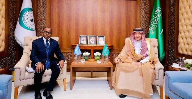 (RIYADH/KSA)-Xukuumadda Federaalka Soomaaliya, iyada oo uu matalayo Wasiiru Dowlaha Arrimaha Dibadda iyo Iskaashiga Caalamiga ah, Cali Maxamed Cumar, ayaa heshay taageero siyaasadeed oo cusub iyo ballanqaadyo lagu xoojinayo iskaashiga labada dal ee Sacuudi Carabiya. Kulankan istiraatiijiga ah ayaa dhexmaray Wasiir Cali Maxamed Cumar iyo Wasiir-ku-xigeenka Arrimaha Dibadda ee Sacuudi Carabiya, Mudane Waleed Al Khareyji, waxaana uu ka dhacay magaalada Jeddah, oo lagu qabtay shirka degdegga ah ee Guddiga Fulinta ee Golaha Iskaashiga Islaamka (OIC). Shirka OIC waxaa uu ahaa mid heer Wasiir Arrimaha Dibadda si loo diyaariyo jawaab mideysan oo go’aan leh oo lagula macaamilayo xaaladda adag ee dhulka Falastiin iyo go’aamada sharci-darrada ah ee ay qaadatay Israel. Intii lagu guda jiray wada-hadallada, labada wasiir waxay isku waafajiyeen mowqifkooda qaran ee ku aaddan amniga gobolka, iyaga oo ku adkeeyay muhiimadda ay leedahay in ururka Islaamku si wadajir ah uga hortago ku xadgudubka sharciga caalamiga ah iyo ilaalinta xuquuqda aasaasiga ah ee shacabka Falastiin. Kulanku wuxuu sidoo kale noqday madal muhiim ah oo lagu xoojinayo amniga iyo iskaashiga dhaqaale ee u dhexeeya Muqdisho iyo Riyadh Wasiir-ku-xigeenka Sacuudiga ayaa si cad u xaqiijiyay in Boqortooyadu ay si adag u taageereyso madax-bannaanida siyaasadeed, iyo midnimada dhuleed ee Soomaaliya. Kulankan ayaa sidoo kale fududeeyay iskaashi dheeraad ah oo ku saabsan adeegyada muhiimka ah ee gudaha, iyadoo labada dhinac ay isku raaceen in la xoojiyo hababka isku xirka hay’adahooda, laguna dhiso heshiisyo amni iyo badaha oo dhawaan la saxiixay.