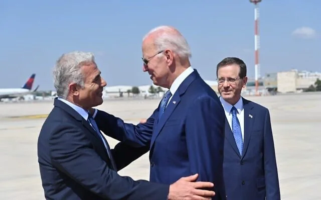 (ANKARA)-Madaxweynaha dalka Maraykanka Joe Diden ayaa waxaa booqasho uga bilaabatay bariga dhexe maanta oo Arbaca ah waxa uuna maanta gaaray Israa’iil,Madaxweynaha ayaa lagu soo dhaweeyey garoonka diyaaradaha ee Ben Gurion ee Israa’iil,soo dhaweynta Madaxweyne Biden ayaa waxaa ka qeyb galay Madaxweynaha Israa’iil Herzog,Raysal Wasaare Yair Lapid iyo Reysal wasaare ku xigeeka Naftali Bennett,sidaas waxaa laga soo xigtay wargayska TIMES OF ISRAEL.Madaxweyne Biden ayaa yiri”Waxaad u baahan tahay inaad noqonin Isra’ili waa inaad noqotid sahyuuni”.Madaxweyne Biden ayaa lagu wadaa inuu booqdo dhulka reer Falastiin ka dibne uu uga gudbo dalka Boqortooyadda Sacuudi Carabiya maalinta Jimcaha.